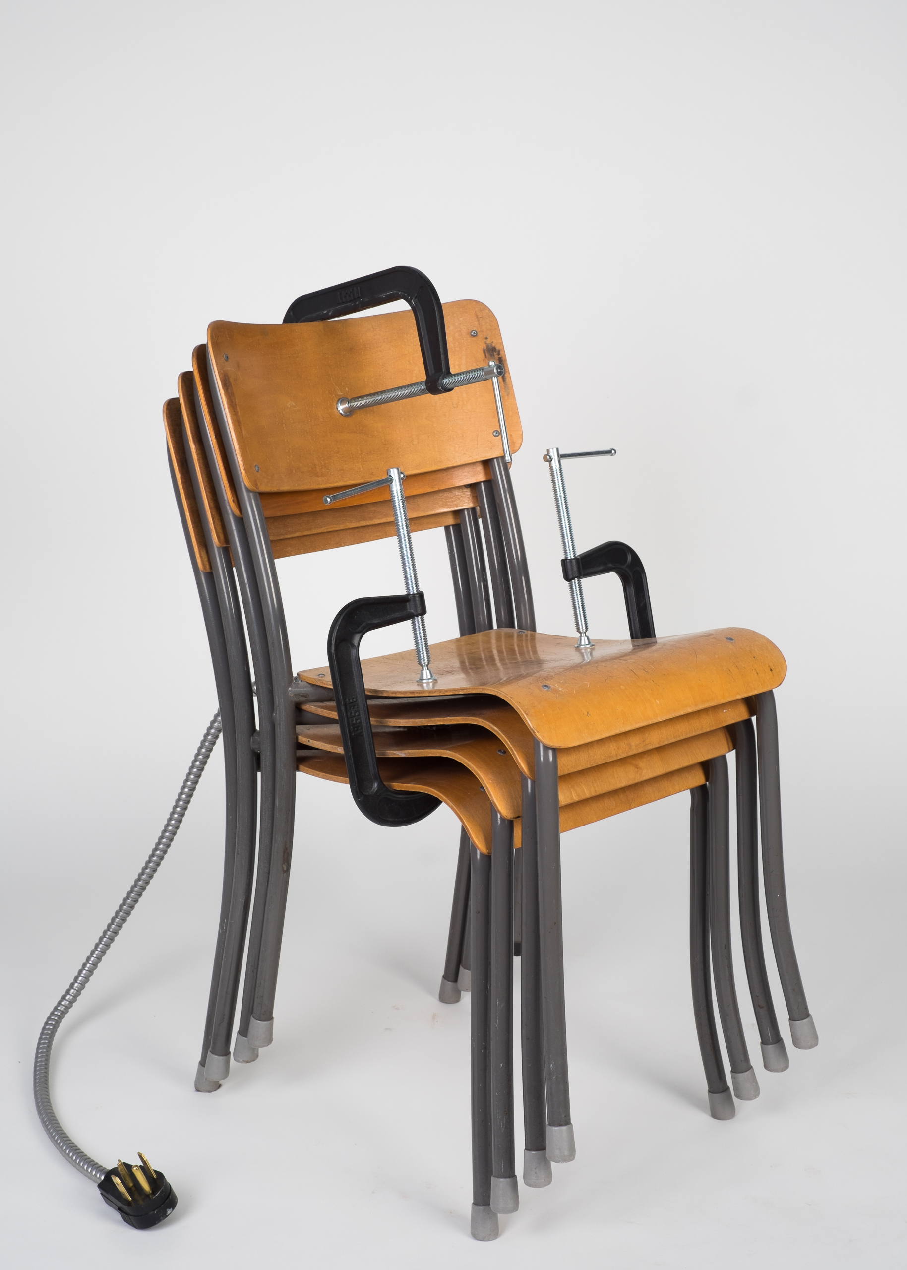 Conform, wood, metal, clamps, electrical cord, 2016, 94cm x 58cm x 48cm